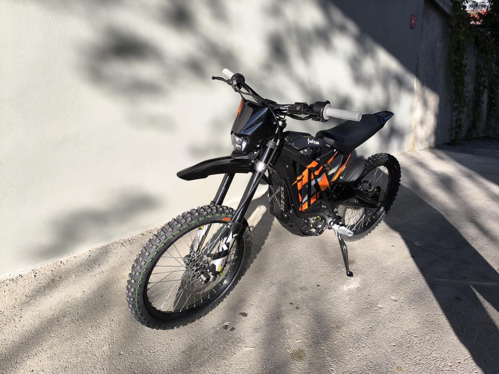 Elektrická freeride motorka do terénu, žádné těžké olověné akumulátory s krátkou výdrží ale Li-ion Panasonic 60V 40Ah s tichou rychlo nabíječkou 10A. Díky špičkové technologii zpracování, kovanému rámu z hliníkových slitin při tlaku až 6000 tun a lithiovému akumulátoru váží motocykl pouhých 56Kg. Z toho rám jen 7,8kg. Díky této hmotnosti je motocykl vhodný jak pro ženy, tak děti s dostatečnou výškou. Klidnou jízdou cca 20km/h ujedete až 100km (tak pomalu nikdo nevydrží jet tak počítejte s dojezdem cca 40km v kopcovitém terénu). Akumulátor je plně nabitý za cca 3hodiny (posledních pár procent u lithiových akumulátorů trvá vždy nejdéle). Trvanlivý bezúdržbový bezkartáčový motor má nominální výkon 6000W. Max rychlost je cca 80km/h, zrychlení z 0 na 50km/h za pouhé 4s, díky vyladěnému převodu a FOC systému řízení, je výsledný maximální kroutící moment na kole úžasných 250Nm a vyjedete tak téměř každý kopec i se stoupáním nad 45°. Komfort doplňuje USB zásuvka 2A pro nabíjení telefonu, navigace, přídavných světel atd. Motorka je pojata jako ultralehký dirt-bike.